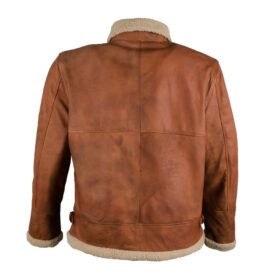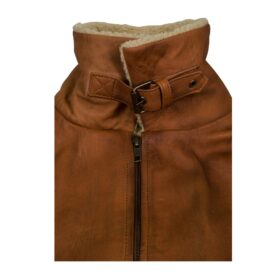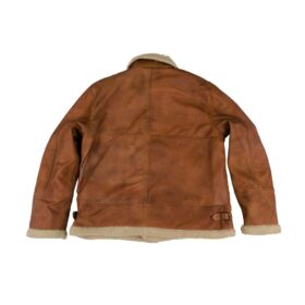 Step out in timeless style with this warm and rugged tan leather aviator jacket. Unlike a full shearling coat, this jacket features a smooth, supple leather exterior in a rich cognac or tan shade, providing excellent weather protection. The jacket is accented with luxurious, soft cream-colored shearling on the wide collar, cuffs, and hem, adding a touch of authentic pilot appeal and extra insulation where it’s needed most.